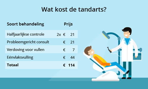 Zolang het blijft bij een controle, het vullen van een klein gaatje of een eenvoudige gebitsreiniging is de tandarts goed betaalbaar. Een voorbeeld: ga je twee keer per jaar naar de tandarts voor controle en moet je een keer terugkomen voor het vullen van een gaatje? Dan ben je voor dat hele jaar ongeveer € 114 kwijt.