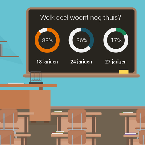Het CBS maakt onderscheid in jonge en oude jongvolwassenen. Beide groepen blijven langer onder de vleugels van hun ouders. Het aandeel 18-jarigen dat thuis woont steeg van 85 procent in 2006 tot 88 procent in 2016. Het percentage 24-jarigen met een kamer bij zijn ouders steeg van 32 tot 36 procent. Zelfs op 27-jarige leeftijd woont nog steeds 17 procent op zolder.