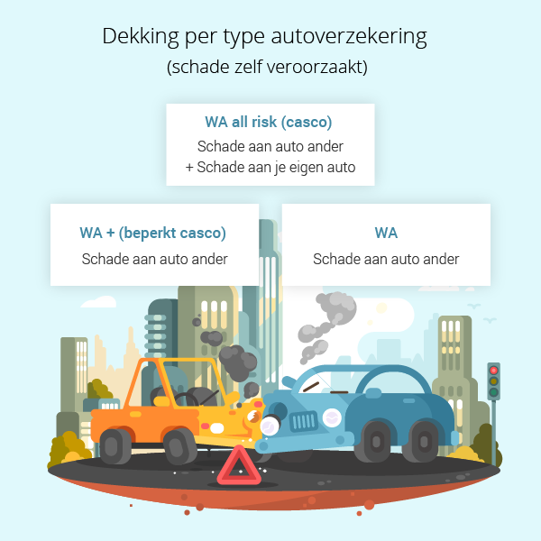 Wellicht moest je, ondanks de waarschuwingen, toch de weg op. In geval van schade door gladheid kun je terugvallen op je autoverzekering. Wat er precies gedekt is, dat hangt af van het type autoverzekering dat je hebt afgesloten. Je bent in alle gevallen verzekerd voor schade die je veroorzaakt aan de auto van een ander.