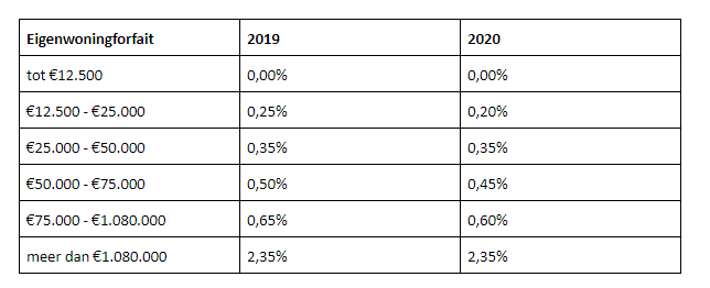 Eerder stipten we het al kort aan, in 2020 daalt het percentage voor de eigenwoningforfait met 0,05 procent. Dit geldt voor woningen met een waarde tussen de 50.000 en 1.080.000. Op zichzelf goed nieuws. De kans is alleen groot dat je er in de praktijk weinig van merkt. Het tarief wordt gebaseerd op de WOZ-waarde. Die waarde is fors gestegen.