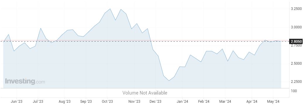 Rente staatslening (10 jaar) in de afgelopen 3 maanden
